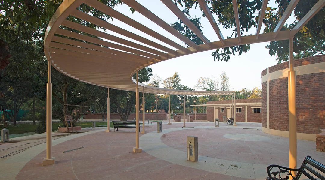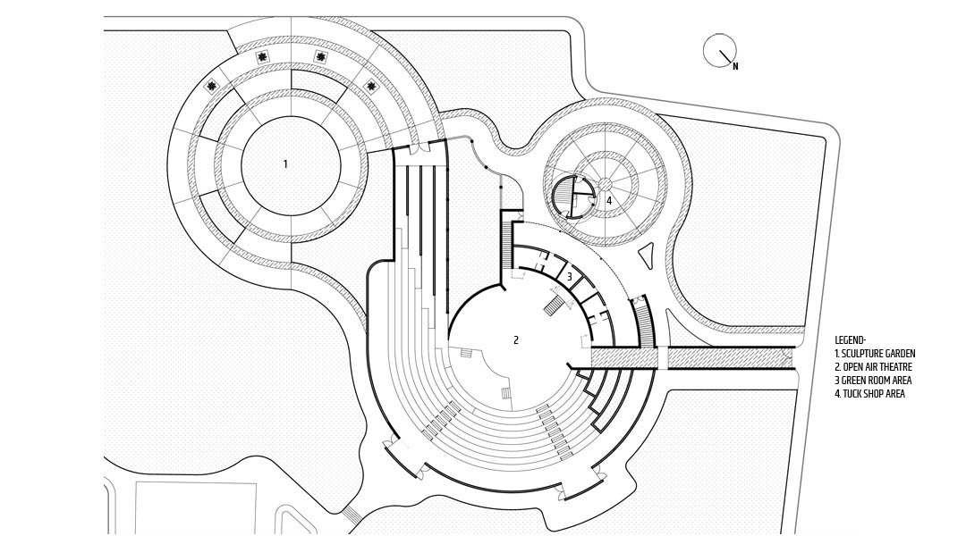 The Recreational Central Park Is Designed In An Institutional Campus With A Strong Emphasis On Flowing / Radiating Form And Patterns Seamlessly Blending From Sculpture Garden To Open Air Theater And Culminating Into The Tuck Shop. With The Contemporary Vibe, The Park Boasts Of Deconstructed Tree Pits And Several Seating Arrangements To Sit, Lay On The Greens, Interact, Practice And Perform In A Vibrant And Casual Environment.